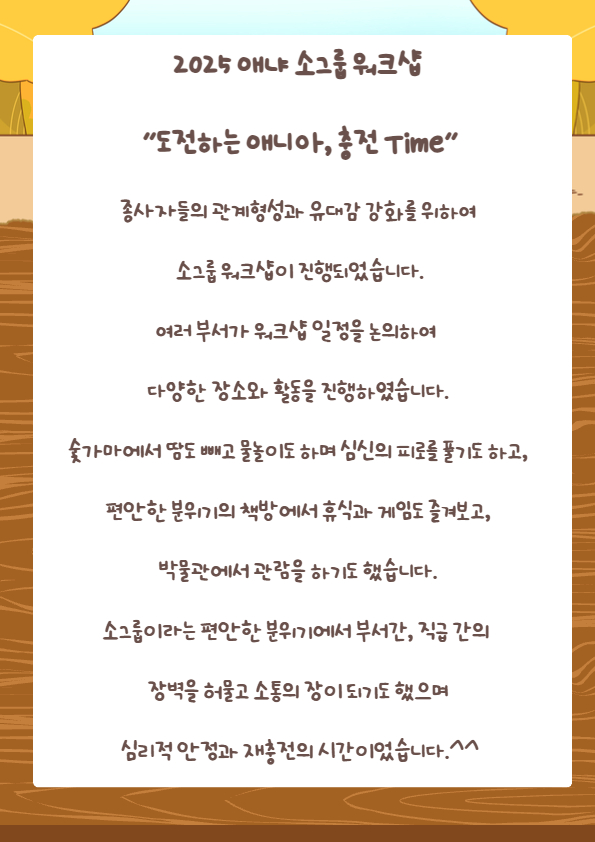 "도전하는 애니아, 충전 Time", 애냐소그룹워크샵